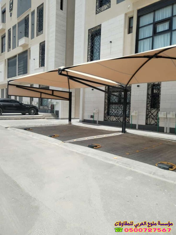 - مظلات معلقة (كابولي): لا تحتاج إلى أعمدة أمامية، مما يوفر مساحة أكبر لحركة السيارة ويتميز بمظهر عصري وأنيق.