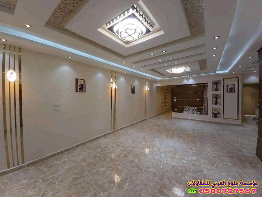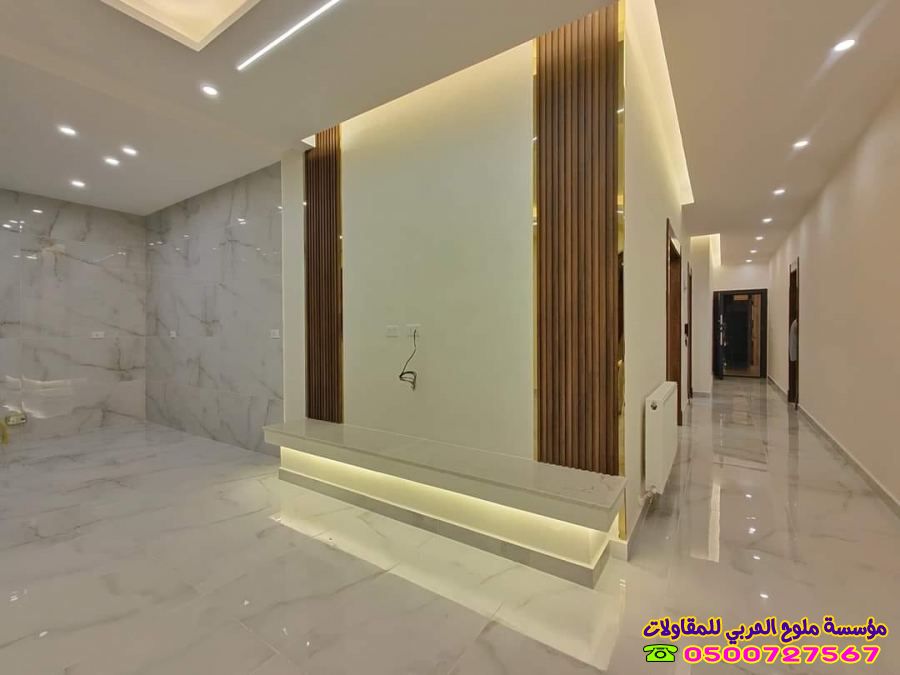 - أعمال التشطيبات الداخلية: وتشمل الدهانات، تركيب الأرضيات (سيراميك، باركيه، رخام)، أعمال الجبس بورد والديكورات الجبسية، تركيب الأبواب والنوافذ، وتمديدات الكهرباء والسباكة.