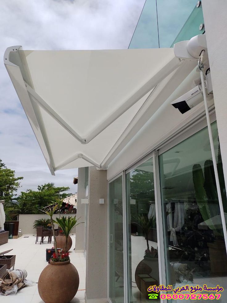 - التصميم العصري: تأتي المظلات المتحركة بتصاميم وألوان متنوعة تتناسب مع مختلف الديكورات الخارجية، وتضيف لمسة جمالية للمكان.