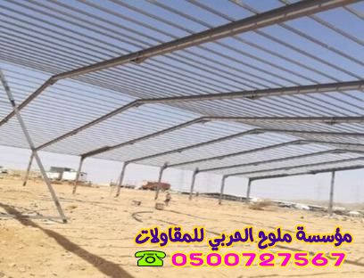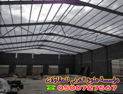 - التغطية النهائية: تركيب السقف والجوانب مع مراعاة الميول لعدم تجمع المياه.
