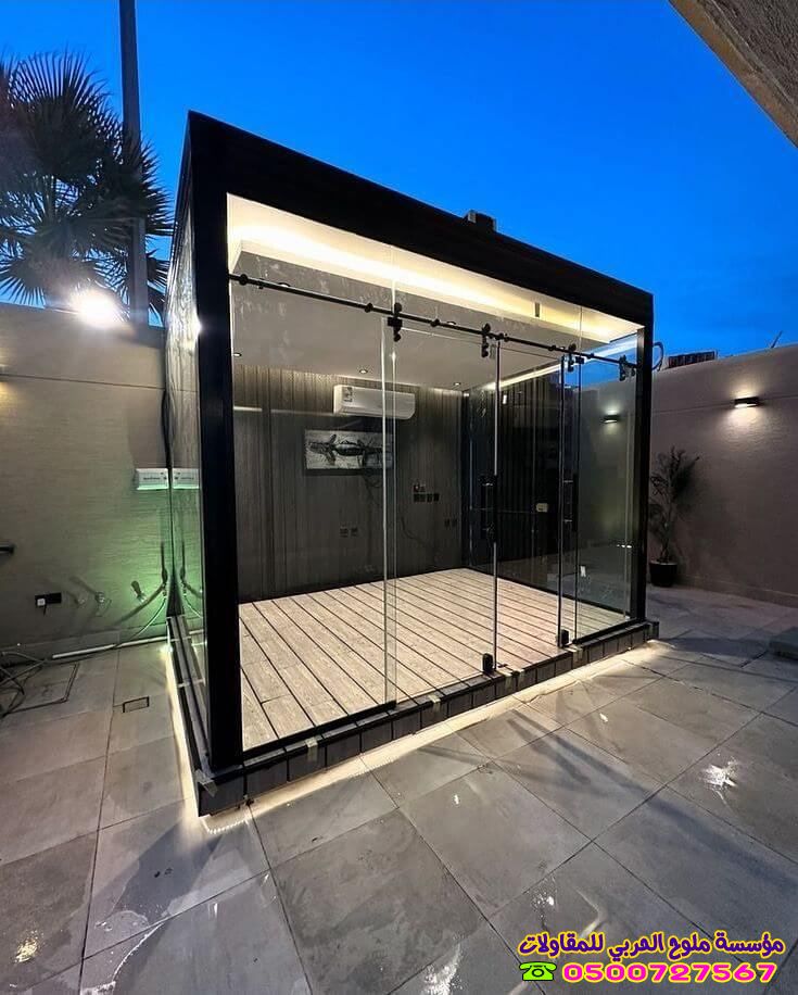 مراحل بناء المجلس الزجاجي الخارجي بجدة