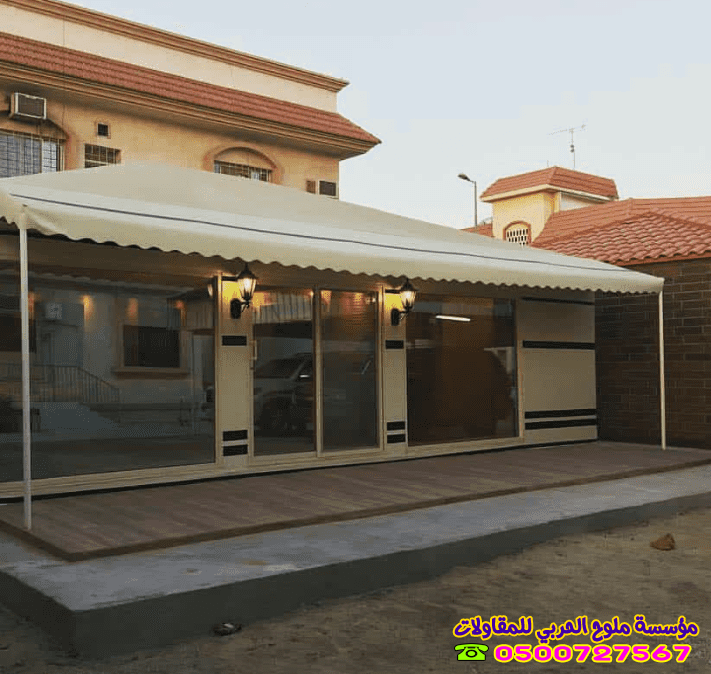 - واجهات زجاجية: استبدال أجزاء من القماش بزجاج "سيكوريت" لإعطاء إطلالة على الحديقة أو المسبح.