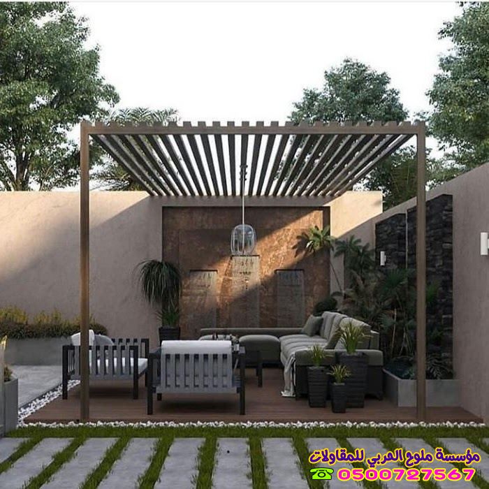 - عنصر الماء والنار: إضافة شلال جداري صغير أو "مدفأة خارجية"يرفع من قيمة المكان الجمالية بشكل مذهل.