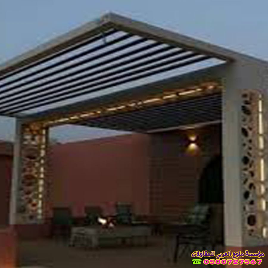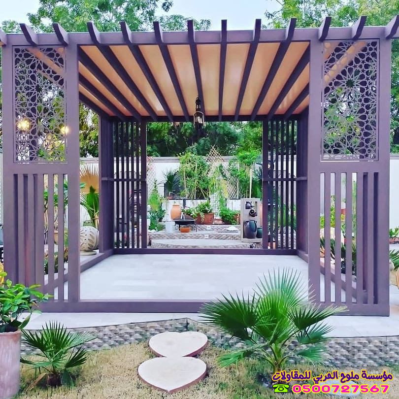 - المظلات: سواء كانت خشبية، حديدية، أو قماشية (PVC)، فهي ضرورية للحماية من أشعة الشمس المباشرة.