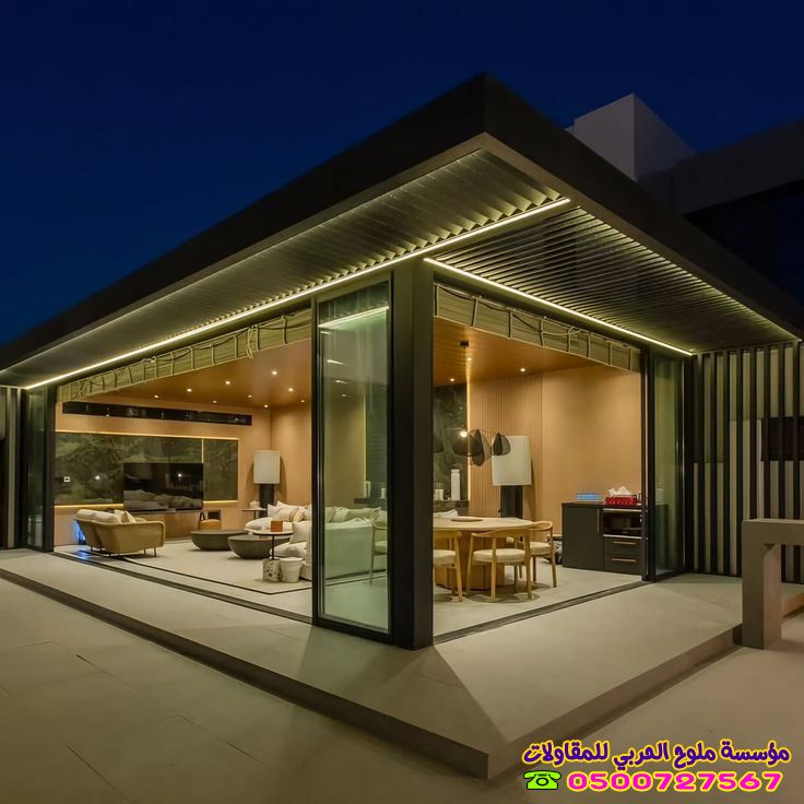 - الملاحق الزجاجية (مودرن): تعتمد على واجهات "الاستركشر" لتسمح بدخول الضوء الطبيعي وتمنح إطلالة مميزة على الحديقة.